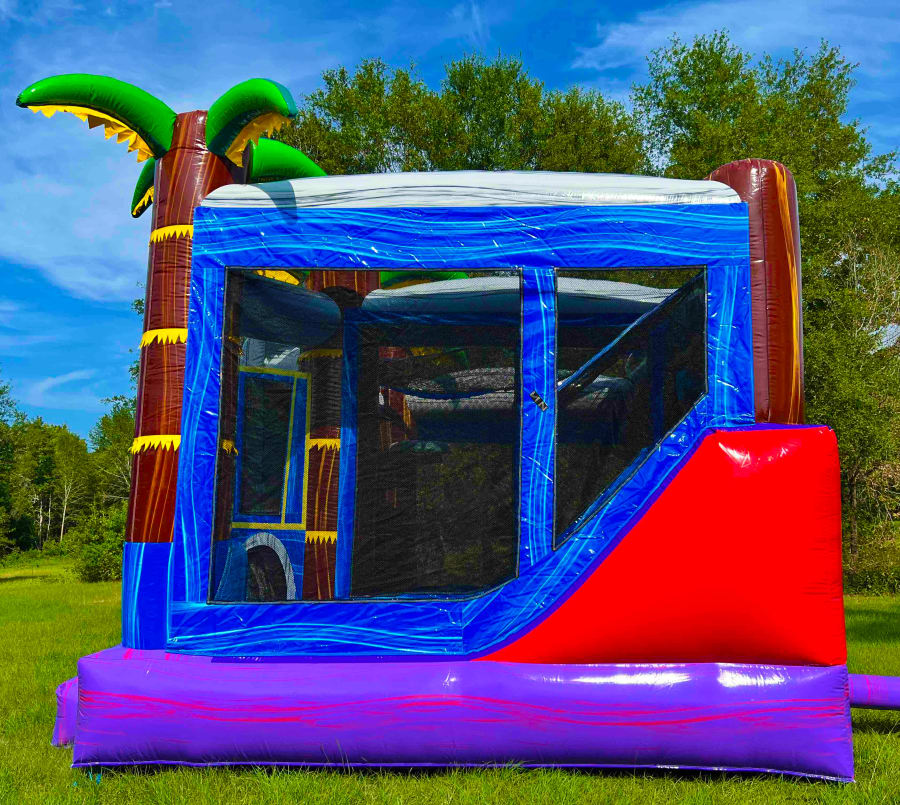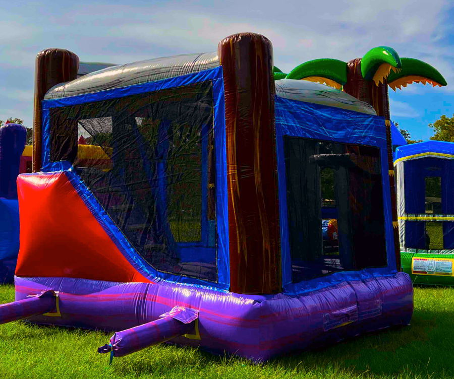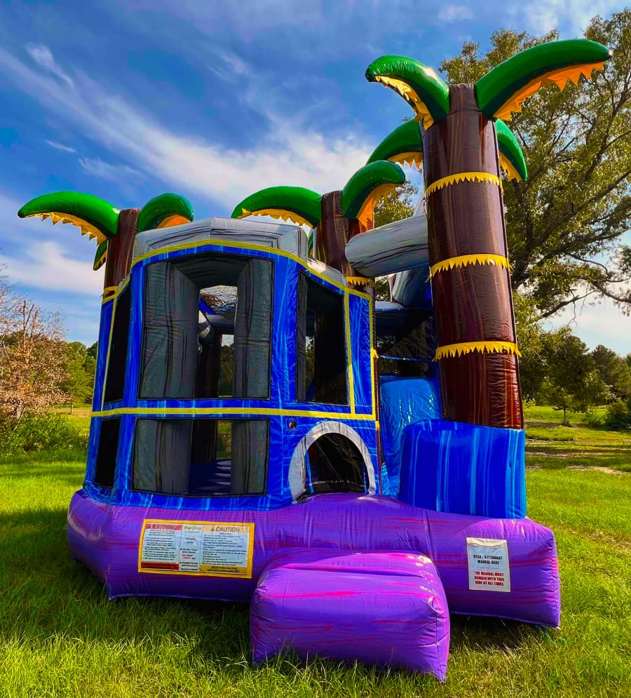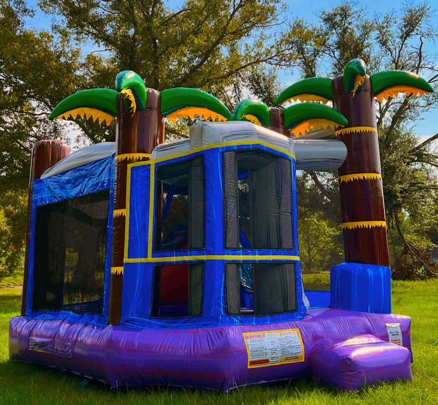 Dive into a vibrant tropical wonderland with our Tropical Purple Bounce House Combo from Bounce On Over, your premier East Texas party rental business! Bursting with vivid colors and lively designs, this inflatable adventure promises an unforgettable experience for kids of all ages.