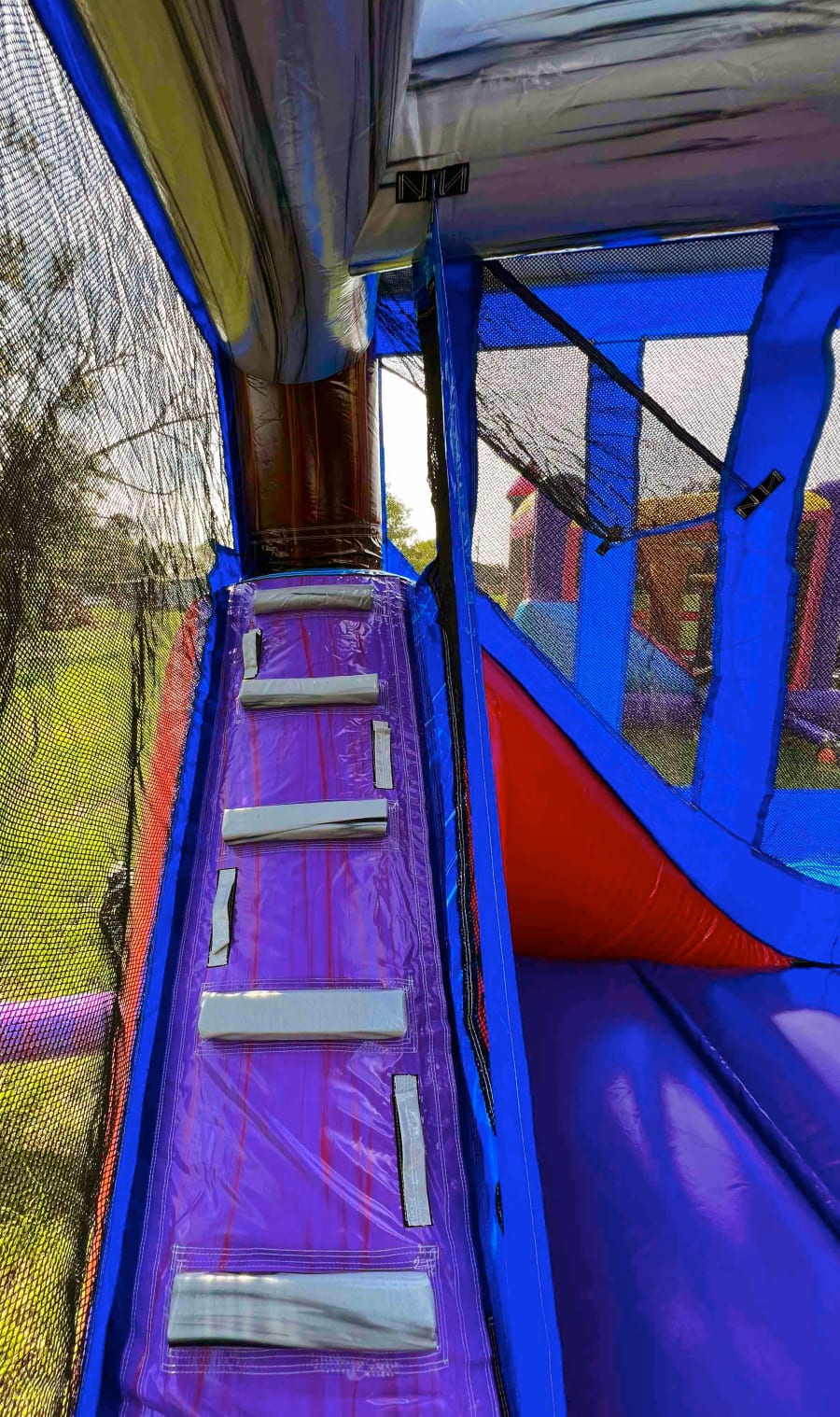 Spark Interaction and Create Memories: Create a dynamic atmosphere that sparks interaction, imaginative play, and unforgettable memories. Whether it's a birthday party, family gathering, or community event, our Tropical Purple Bounce House Combo is sure to be the highlight of the day.